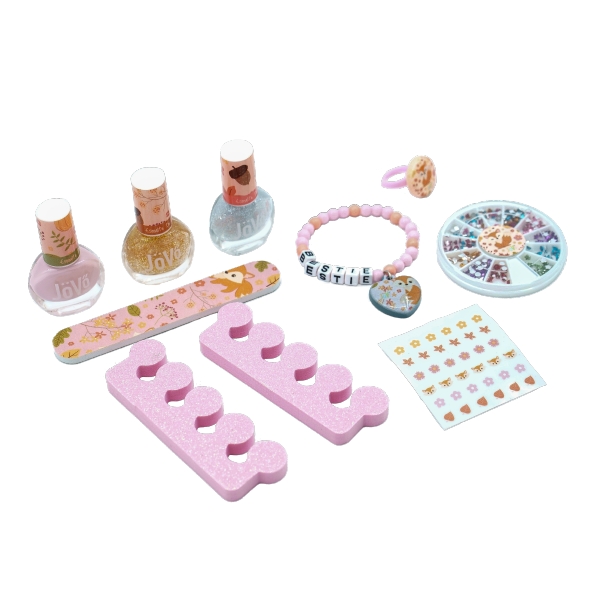 De schattige babykoffer met vosmotief is de perfecte metgezel voor je kleintjes. Hij bevat nagellak en accessoires die je in water kunt wassen, en een set om armbandjes te maken. Gemaakt van duurzame materialen, garandeert het een lange levensduur en eenvoudige reiniging. De etui is voorzien van een veilige sluiting om per ongeluk openen te voorkomen.