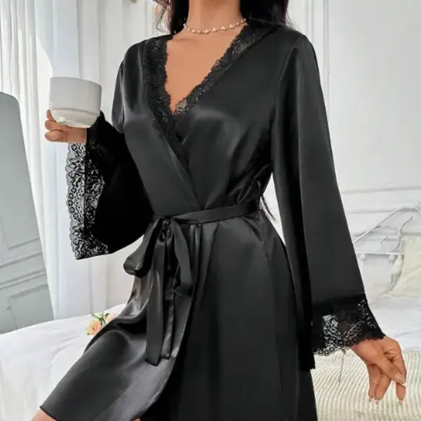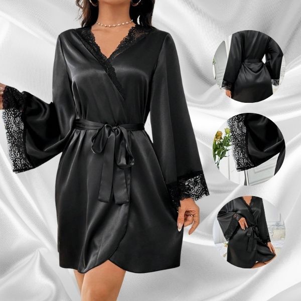 Deze badjas combineert zijdezachte stof met delicate kanten details, zodat je je zelfverzekerd en verleidelijk voelt. Perfect om romantische momenten te vieren met je geliefde.