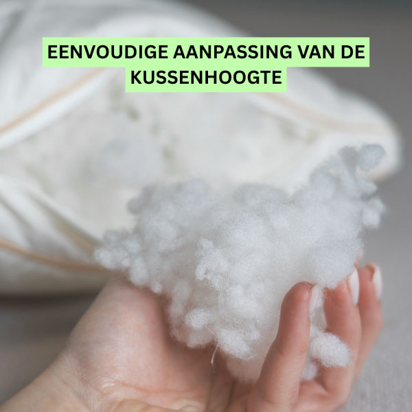 De binnenvoering bevat bamboevezels die vocht absorberen en het kussen hygiënisch houden. Hoogwaardige microvezelvulling biedt zachte ondersteuning voor langdurig comfort.