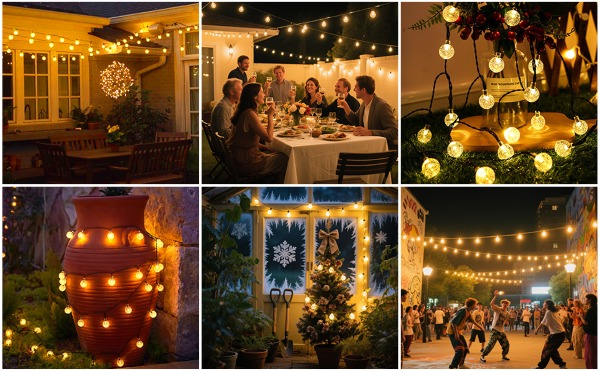 Vier je speciale evenementen – bruiloften, picknicks of kerstvieringen met blijvende elegantie. SOLSTICE string lights en zonnepanelen zijn IP44 waterdicht en kunnen binnen en buiten worden gebruikt zonder dat je je zorgen hoeft te maken over schade door het weer.