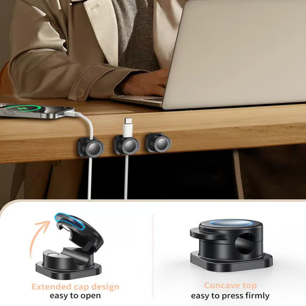 Houdt je oplaadkabels netjes en voorkomt dat ze van het bureau vallen.