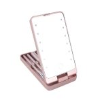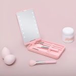 De kwastenset en LED-spiegel passen perfect in je tas, zodat je je make-up overal gemakkelijk kunt bijwerken.