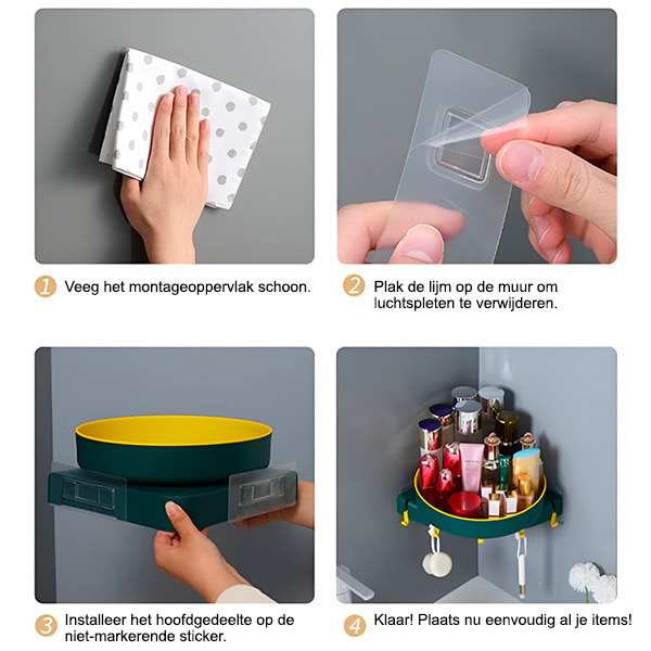 Zelfklevende wandhoek draaibare organizer | SPACESAVER