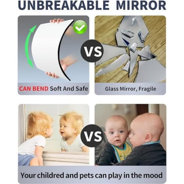 Vervaardigd uit polystyreen, deze spiegel is veilig, flexibel en zal niet breken als hij valt.